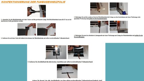 220 W/m² FUßBODENHEIZUNG ELEKTRISCH 220 W/m² HEIZFOLIE Größe: 1 m = 0,5 m² ROLLENWARE LAMINAT/PARKETTDescription : Die elektrischen Heizfolien sind für elektrische großflächige Fußbodenheizung in Innenräumen bestimmt. Ihr Hauptvorteil besteht in der Stärke der Heizfolie - nur 0,4 mm (!) und in der Fähigkeit, mit ihrer ganzen Fläche zu beheizen - dadurch wird die erforderliche Leistung schon bei niedrigeren Temperaturen erreicht. Die Baukonstruktionen werden also weniger wärmebeansprucht und die Oberflächentemperatur ist gleichmäßig verteilt. Weil die Folien - im Unterschied zu anderen Systemen - unmittelbar unter die Deckschicht (Fußbodenbelag) verlegt werden, ist das Heizsystem flexibler und sein Betrieb ist wirtschaftlicher als bei Durchwärmen einer Betonschicht. Nicht zuletzt zeichnen sich die Folien durch einfachere Verlegung und sog. trockenen Installierungsprozess (ohne Kitt, Spachtelmasse, Beton, usw.) aus, deshalb sind sie z.B. für Holzbauwerke ideal.