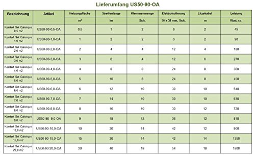Calorique Infrarot Heizfolie Elektrische Fußbodenheizung 50 cm Set 90 W/m² 1,0 m²Description : Elektrische Fußbodenheizung Set